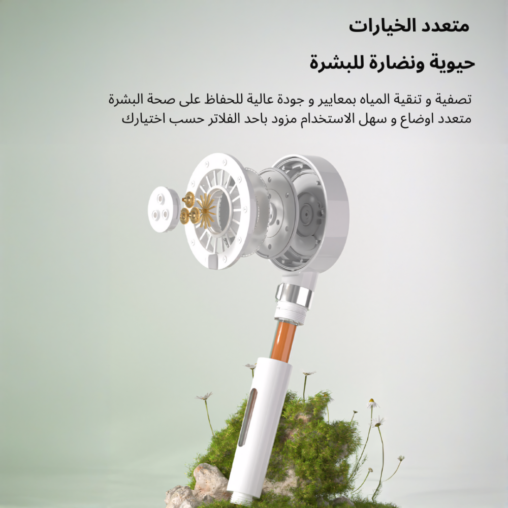 2. بفلتر التنقية المتقدم: يعمل هذا الفلتر على تنقية المياه من الشوائب والمعادن الضارة، مما يحافظ على نظافة المياه ويجعلها أكثر نعومة على البشرة والشعر. هذا الخيار مصمم لمن يهتم بنقاء المياه وصحة البشرة والشعر على حد سواء.